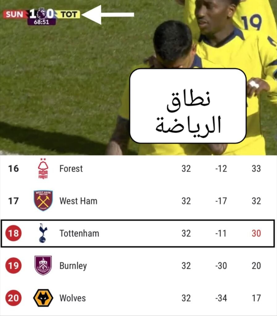المهزله الاكبر بقي ان توتنهام اصبح حاليا في مراكز الهبوط لان ويست هام فاز علي وولفز و تقدم علي توتنهام بفارق نقطتين ، و كمان لسة هيلعبوا مع تشيلسي و استون فيلا خارج ملعبهم ، ده غير مباراتين مع ايفرتون و برايتون اللي بينافسوا علي مركز مؤهل للدوري الاوروبي ، يعني توتنهام ممكن يهبط فعلا من البريميرليج لاول مرة في التاريخ !