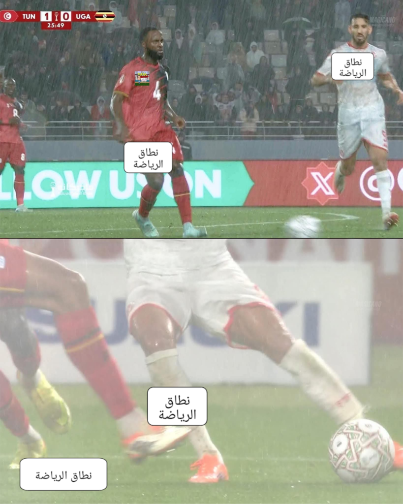 الصورة دي كانت من مباراة تونس و اوغندا امبارح في الملعب الاوليمبي بالرباط ، كميه مطر لا حصر لها نزلت في الشوط الاول تخلي اي مباراة في الدنيا تقف !