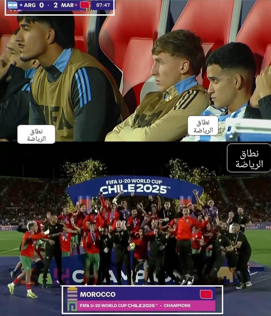 منتخب المغرب العظيم علموا الارجنتين النهاردة يعني ايه كرة قدم مثاليه في نهائي كاس العالم للشباب و كسبوهم بنتيجه 2 / 0 و فازوا بكاس العالم كاول منتخب عربي في التاريخ !