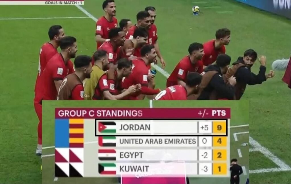 النهاردة الاردن بترد علي الكل و بتتصدر المجموعة برصيد 9 نقاط لاول مرة في التاريخ و هما المنتخب الوحيد اللي قدر يحقق العلامه الكامله في البطوله كلها !