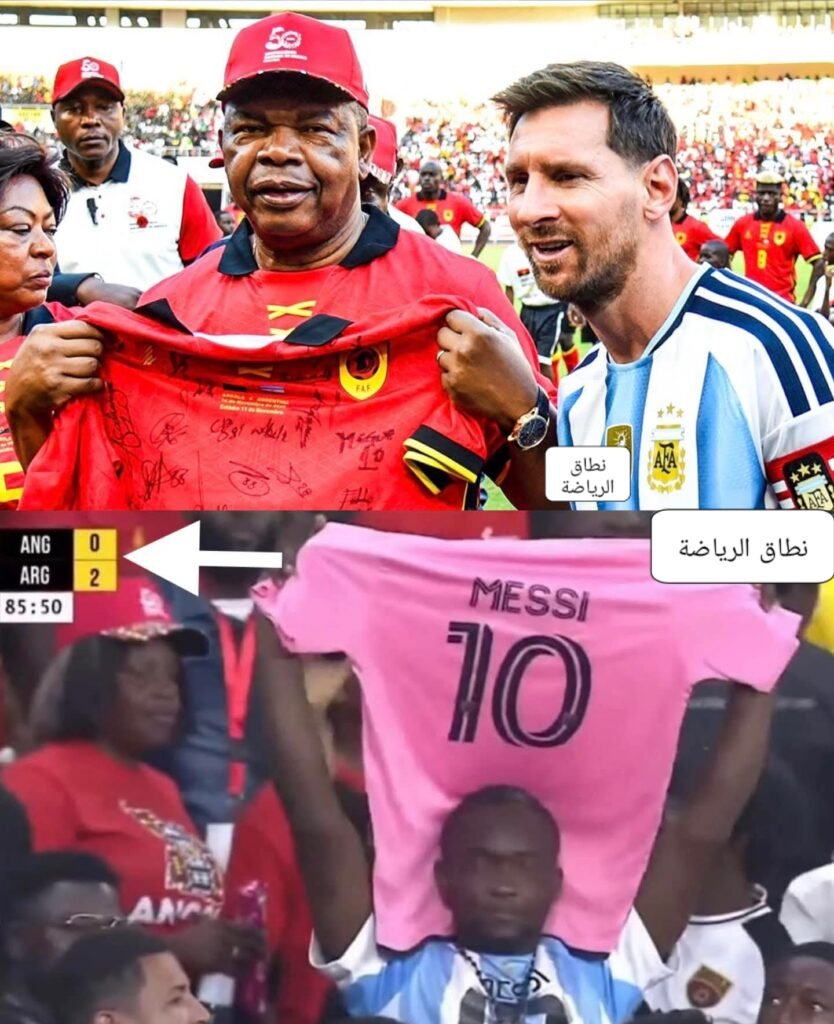 الجميل في الحدث ده ان رئيس انجولا قبل المباراة عمل تكريم لميسي و اهدي له تيشيرت خاص بمنتخب انجولا و ميسي رد له الهديه ب تيشيرت خاص لمنتخب الارجنتين !